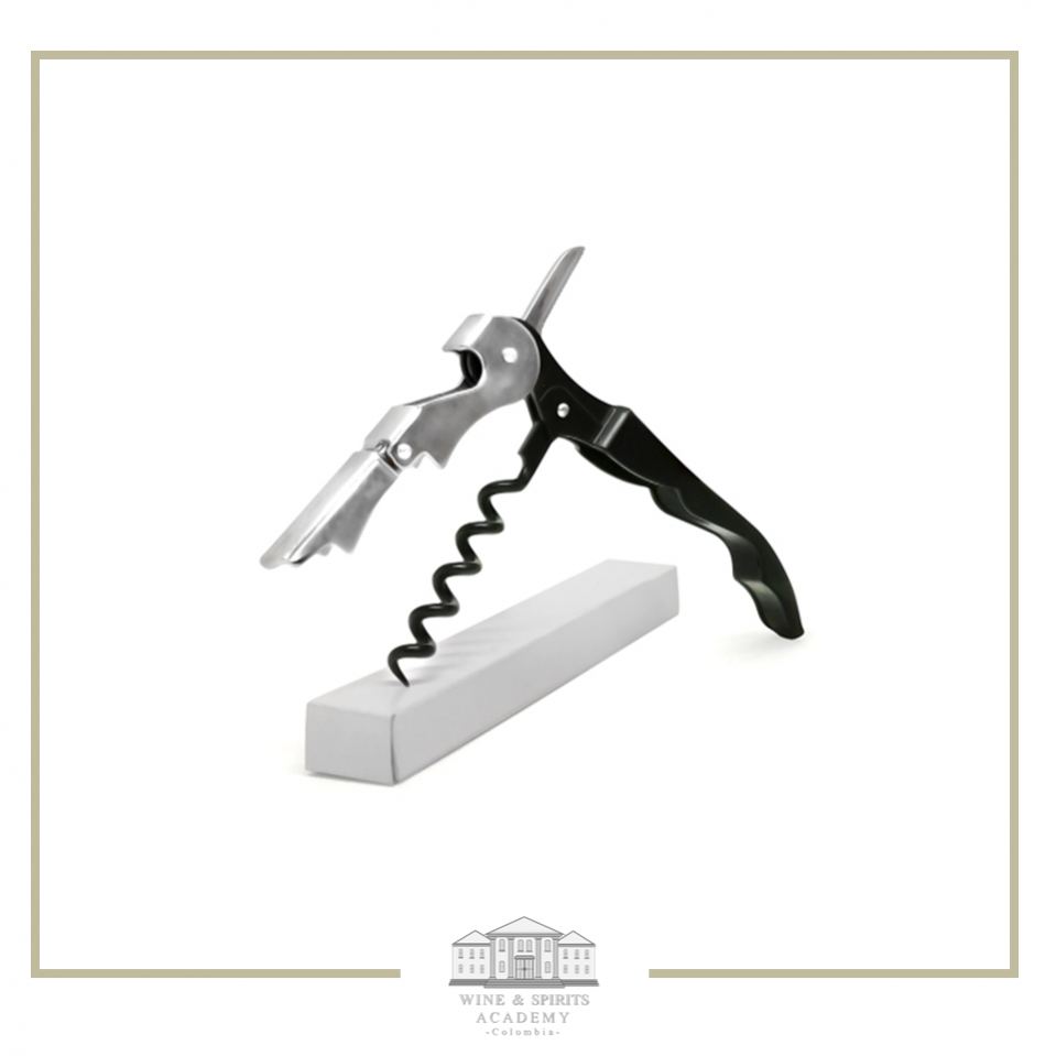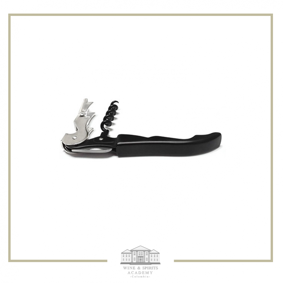Descorchador profesional básico de 2 tiempos, Juego de palancas, espiral anti oxido, y cuchilla corta capsula. También contiene incluido en su diseño destapador de tapa corona.